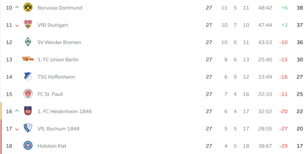 Турнірна таблиця Бундесліги після 27-го туру: