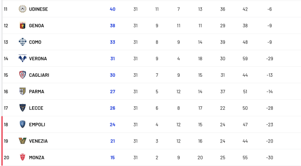 “Емполі”, “Венеція” та “Монца” знаходяться в зоні вильоту.