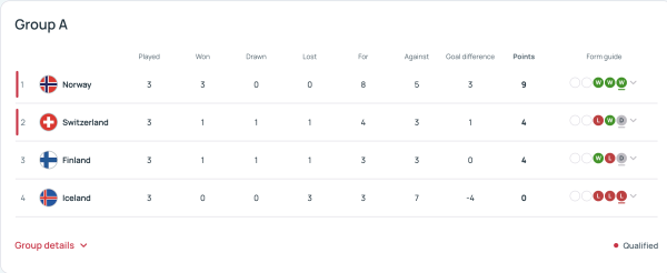 Жіноче Євро-2025: турнірна таблиця після матчів 3-го туру