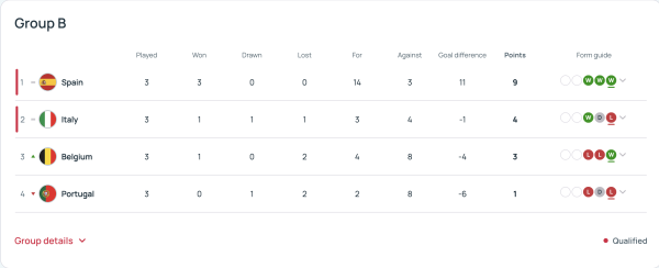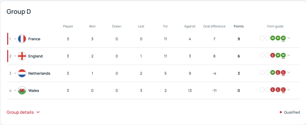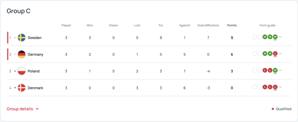 Турнірна таблиця груп жіночого Євро-2025 після 3-го туру: