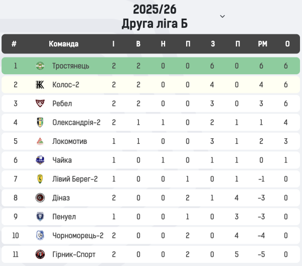 Турнірна таблиця Другої ліги після матчів 2-го туру: