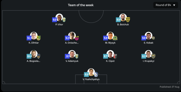 Аналітичний портал Sofascore сформував символічну збірну 1/32 фіналу Кубка України сезону-2025/26.