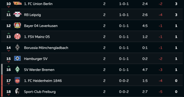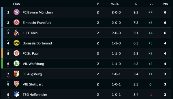 Відомо, якою є ситуація в турнірній таблиці німецької Бундесліги за підсумками 2-го туру чемпіонату.