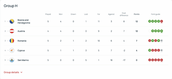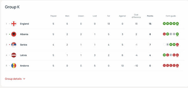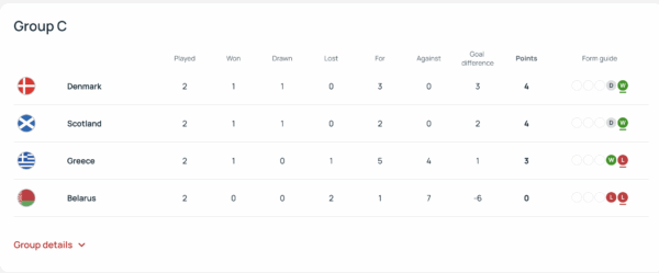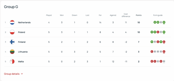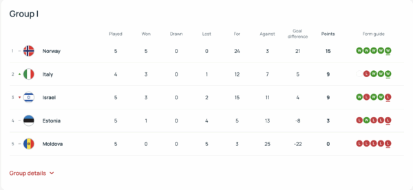 Європейський відбір на ЧС-2026: турнірні таблиці після вересневих матчів