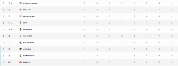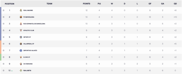 Турнірна таблиця Ла Ліги після 4-го туру: