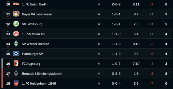 Відомо, якою є ситуація в турнірній таблиці німецької Бундесліги за підсумками 4-го туру чемпіонату.