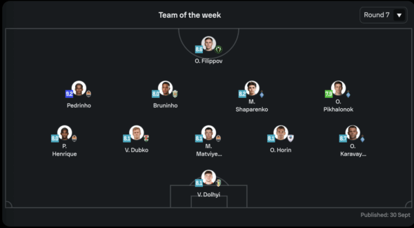 Аналітичний портал Sofascore сформував символічну збірну 7-го туру української Прем’єр-ліги.