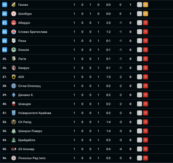 Відомо, якою є ситуація в турнірній таблиці основного етапу Ліги конференцій після матчів 1-го туру.