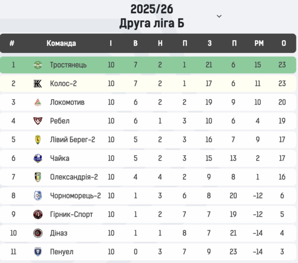“Тростянець” надалі очолює турнірну таблицю Групи Б, випереджаючи “Колос-2” за додатковими показниками. Слідом за ними ідуть “Локомотив”, “Ребел” та “Лівий Берег-2”.