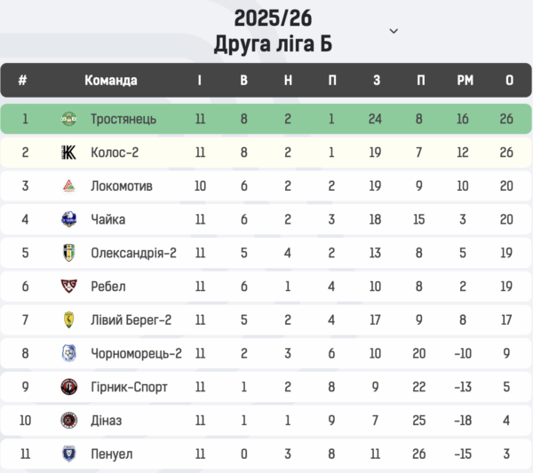 “Тростянець” надалі очолює турнірну таблицю Групи Б, випереджаючи “Колос-2” за додатковими показниками. Слідом за ними ідуть “Локомотив”, “Чайка” та “Олександрія-2”.