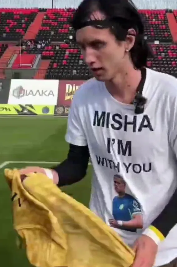 Після забитого гола Муха показав футболку на якій було написом наступне: “Міша, я з тобою”.