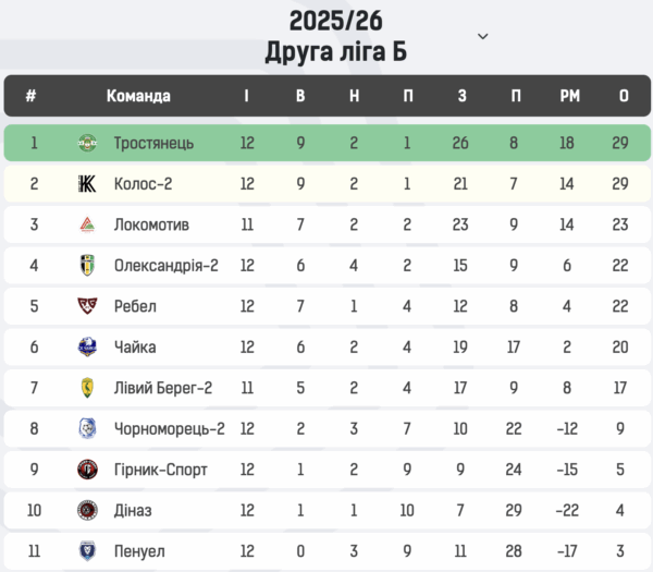 Тим часом, “Тростянець” надалі очолює турнірну таблицю Групи Б, випереджаючи “Колос-2” за додатковими показниками. Слідом за ними ідуть “Локомотив”, “Олександрія-2” та “Ребел”.