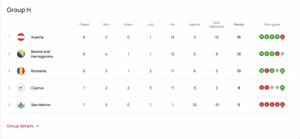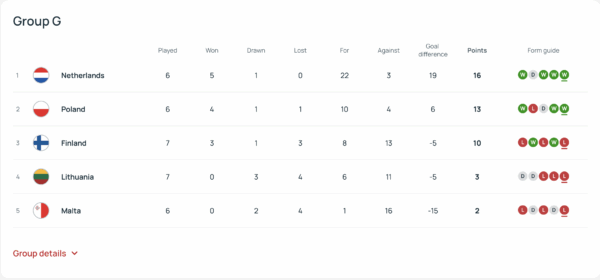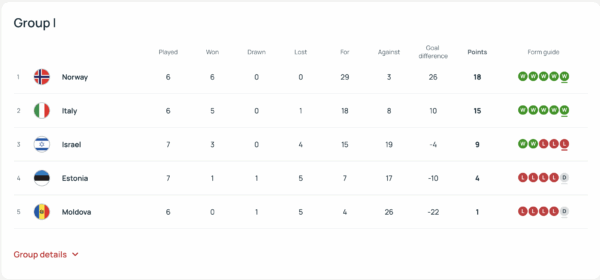 Європейський відбір на ЧС-2026: турнірні таблиці після жовтневих матчів