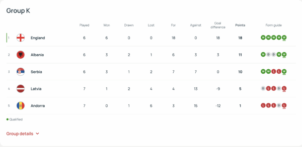 Відомо, якою є ситуація в турнірних таблицях усіх груп європейського відбору на чемпіонат світу-2026 після матчів жовтневого циклу.