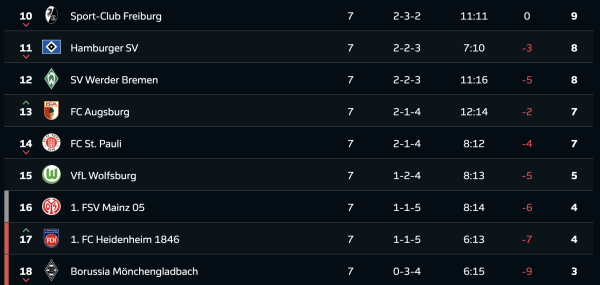 Турнірна таблиця Бундесліги після 7-го туру: