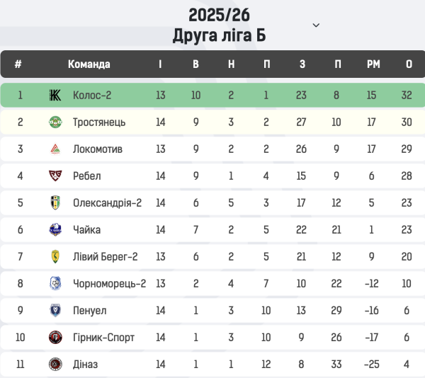 Тим часом, “Колос-2” тепер очолює турнірну таблицю Групи Б. Слідом ідуть “Тростянець”, “Локомотив”, “Ребел” та “Олександрія-2”.