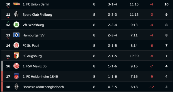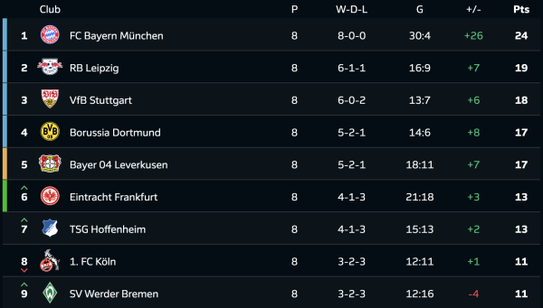 Турнірна таблиця Бундесліги після 8-го туру: