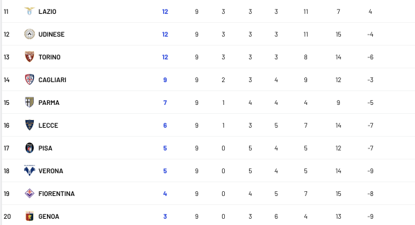 Відомо, якою є ситуація в турнірній таблиці італійської Серії А за підсумками 9-го туру чемпіонату.