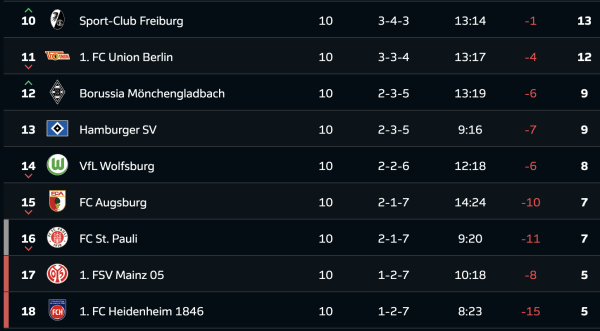 “Санкт-Паулі” перебуває в зоні перехідних матчів, а “Майнц” та “Гайденгайм” – у зоні вильоту.