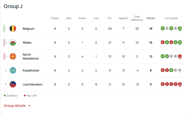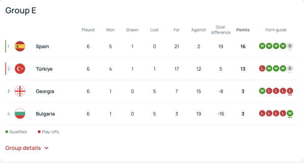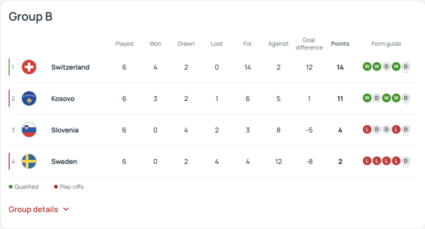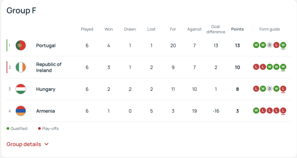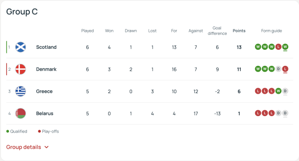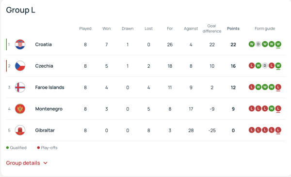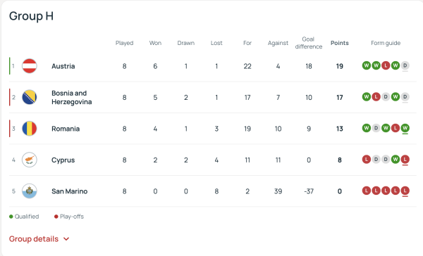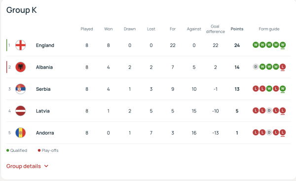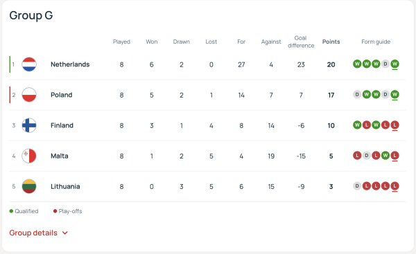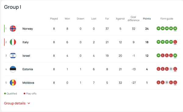 Європейський відбір на ЧС-2026: турнірні таблиці після листопадових матчів