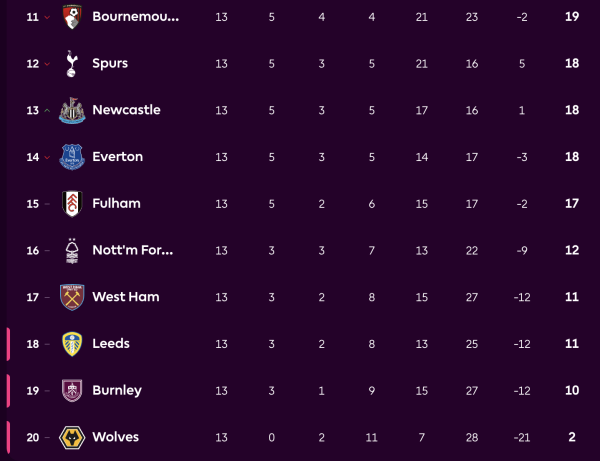 Відомо, якою є ситуація в турнірній таблиці Англійської Прем’єр-ліги за підсумками 13-го туру чемпіонату.