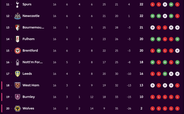 Відомо, якою є ситуація в турнірній таблиці Англійської Прем’єр-ліги за підсумками 16-го туру чемпіонату.