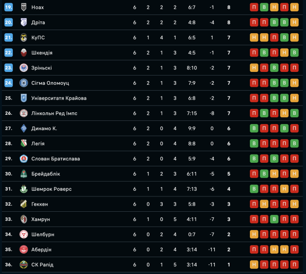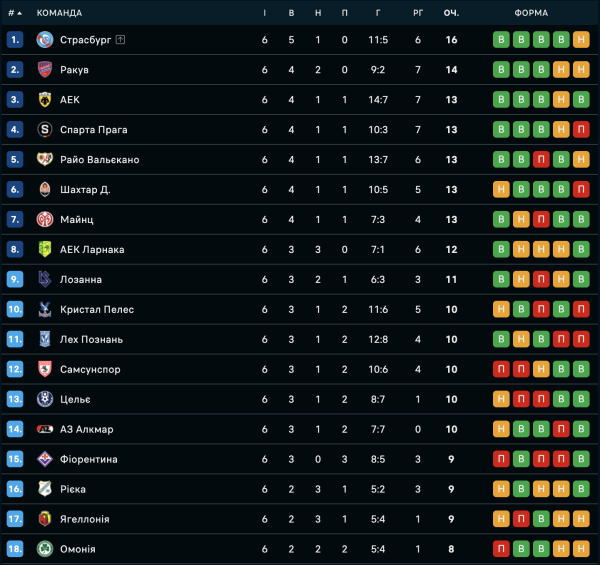 Відомо, якою є ситуація в турнірній таблиці основного етапу Ліги конференцій після матчів 6-го туру.