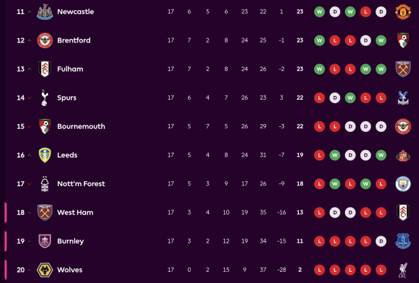 Відомо, якою є ситуація в турнірній таблиці Англійської Прем’єр-ліги за підсумками 16-го туру чемпіонату.