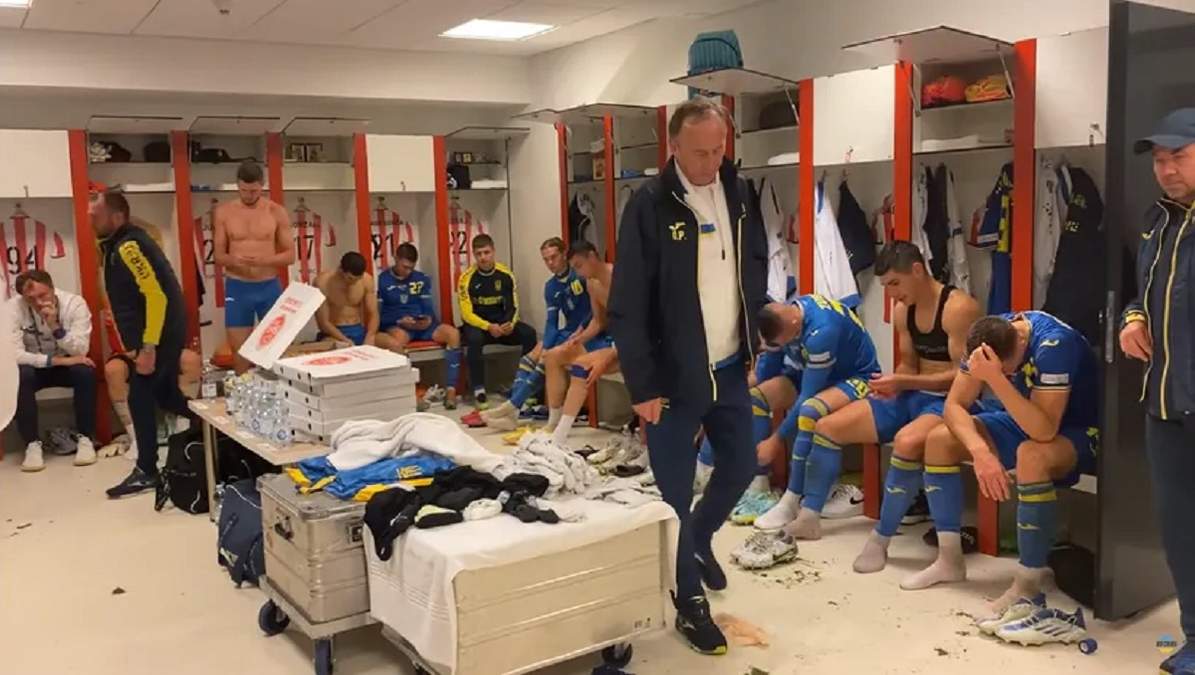Одразу після фінального свистка у Кракові наставник “синьо-жовтих” виголосив коротку промову до гравців. Поводився він у рази спокійніше, ніж на пресконференції кількома хвилинами пізніше.