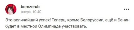 Водночас росія шукає союзників у спорті в усьому світі. Цього тижня міністерство спорту рф підписало меморандум про взаєморозуміння в галузі фізичної культури й спорту з Беніном, а також меморандум про взаєморозуміння в галузі спорту з Того. Спортсменів із Беніну запрошено на Міжнародний фестиваль студентського спорту-2023 у Єкатеринбурзі та Ігри Майбутнього-2024 у Казані. Крім того, росія виділить 86 стипендій для тонголезьких студентів, а також готова опрацювати питання виділення квот і для спортсменів із цієї країни.