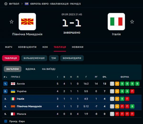 Станом на зараз зрібна України посідає 2-ге місце в групі С відбору на Євро-2024.