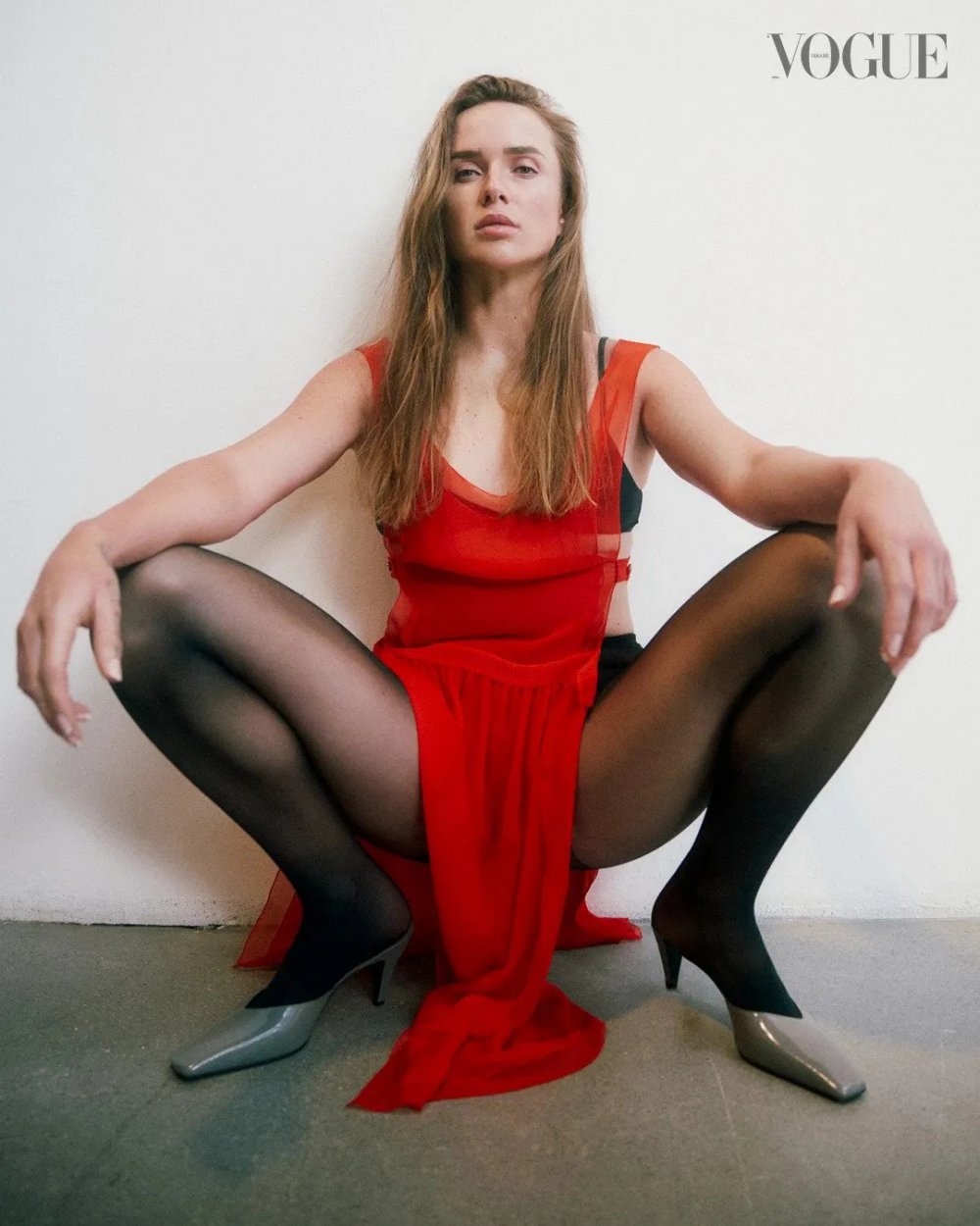 Для фотосесії зірці підібрали сміливі образи. Вона позувала в сукні максі з глибокими розрізами.